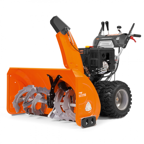 Дополнительные характеристики Электрический стартер, подогрев рукояток, система привода Disk-O-Matik, шнеки и крыльчатка выброса снега, проходимость и маневренность, агрессивные шнеки-ледорубы, самовосстанавливающийся редуктор, большие зимние пневматические колеса, панель управления, стальной желоб выброса снега, датчик уровня масла, защита от ржавчины ZN+, двухсоставные направляющие лыжи.